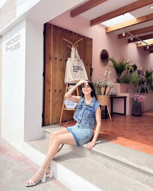 Chalequito especial, de mezclilla original. Tonalidad celeste nevado.